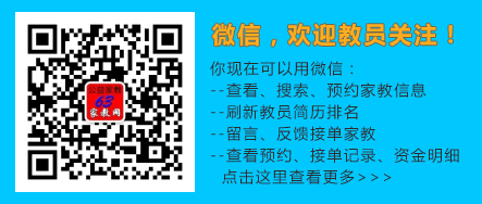 63家教中心不向家长(学员)收取任何费用,免费推荐优秀大学生家教老师或专职教师上门家教!